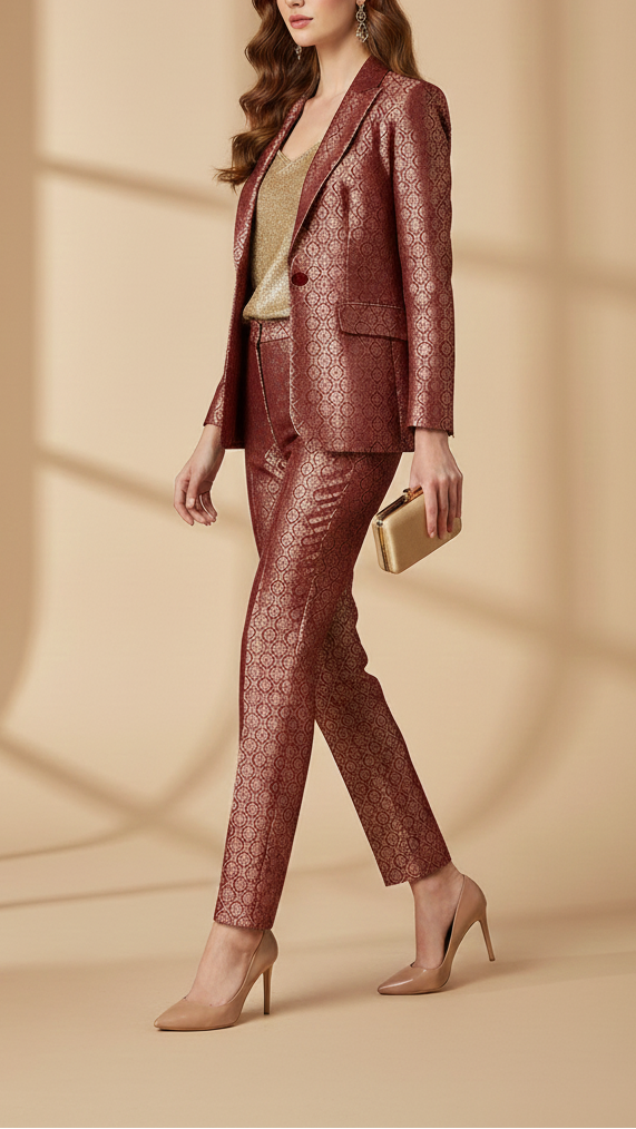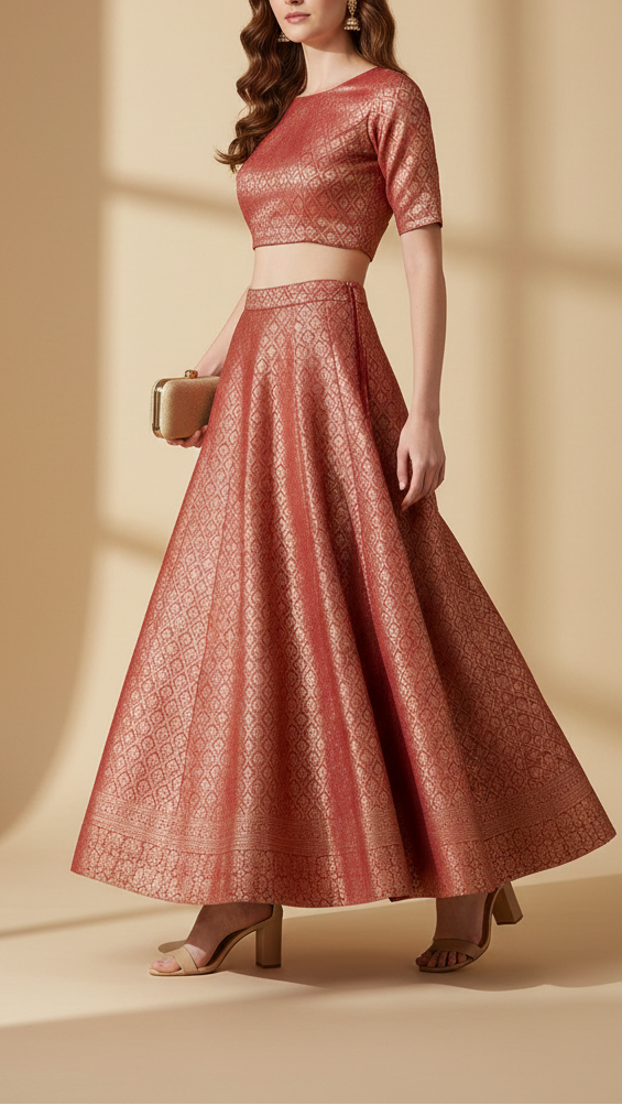 Perfect for sarees, anarkalis, jackets, ethinic jumpsuits, sherwani, etc. The rich look of this fabric is ideal for festive outfits, wedding attire & traditional wear.