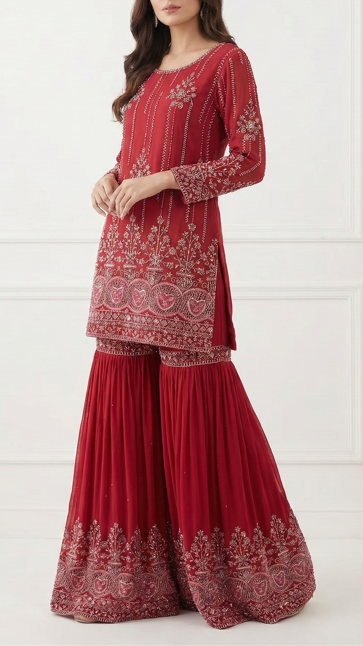 Should you require further assistance, please contact our dedicated customer care team. Provide them with your body dimensions and a sample image of the desired attire. Our experts will ensure you receive precise guidance tailored to your needs, reflecting our commitment to exceptional service and luxury.