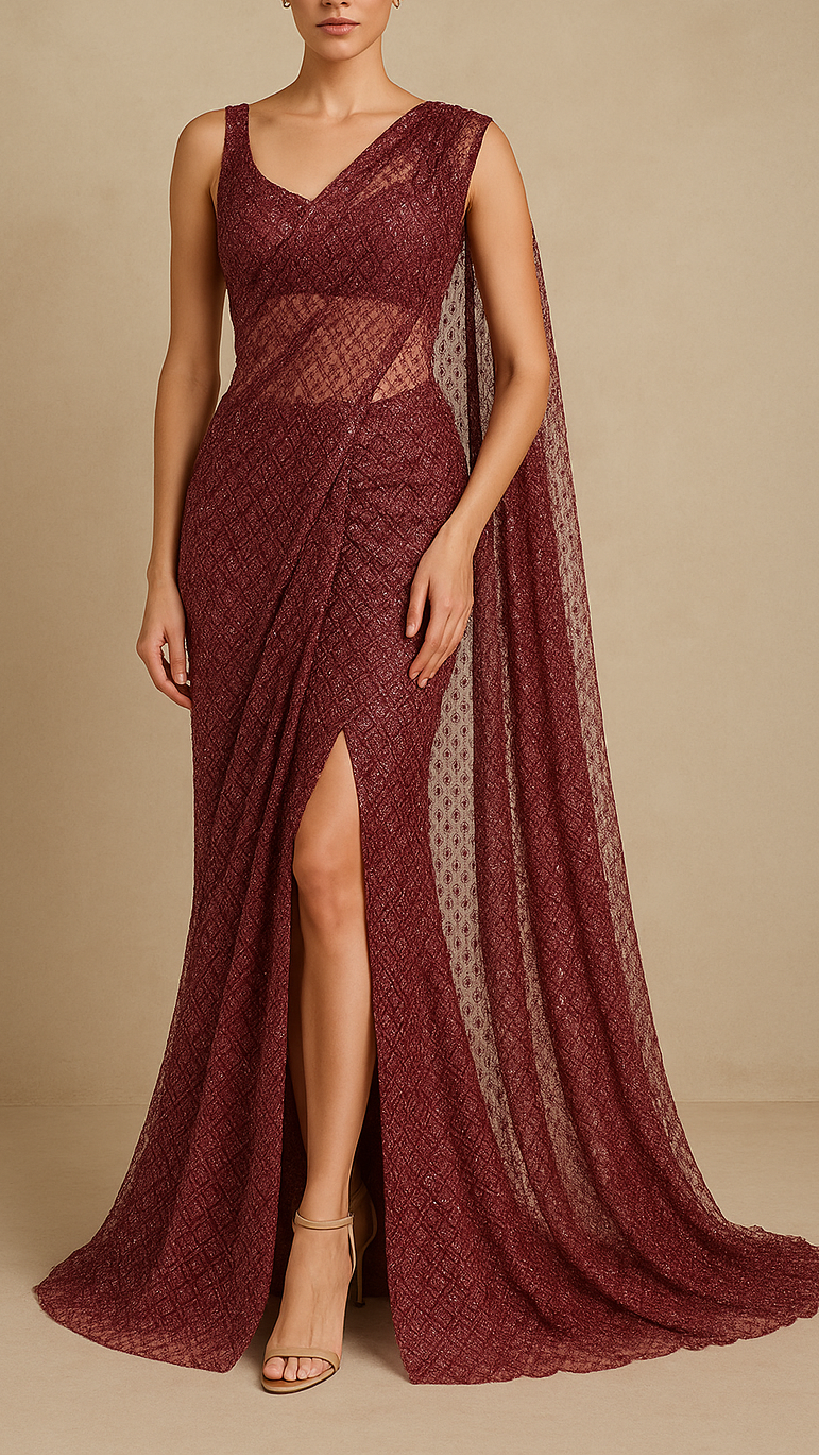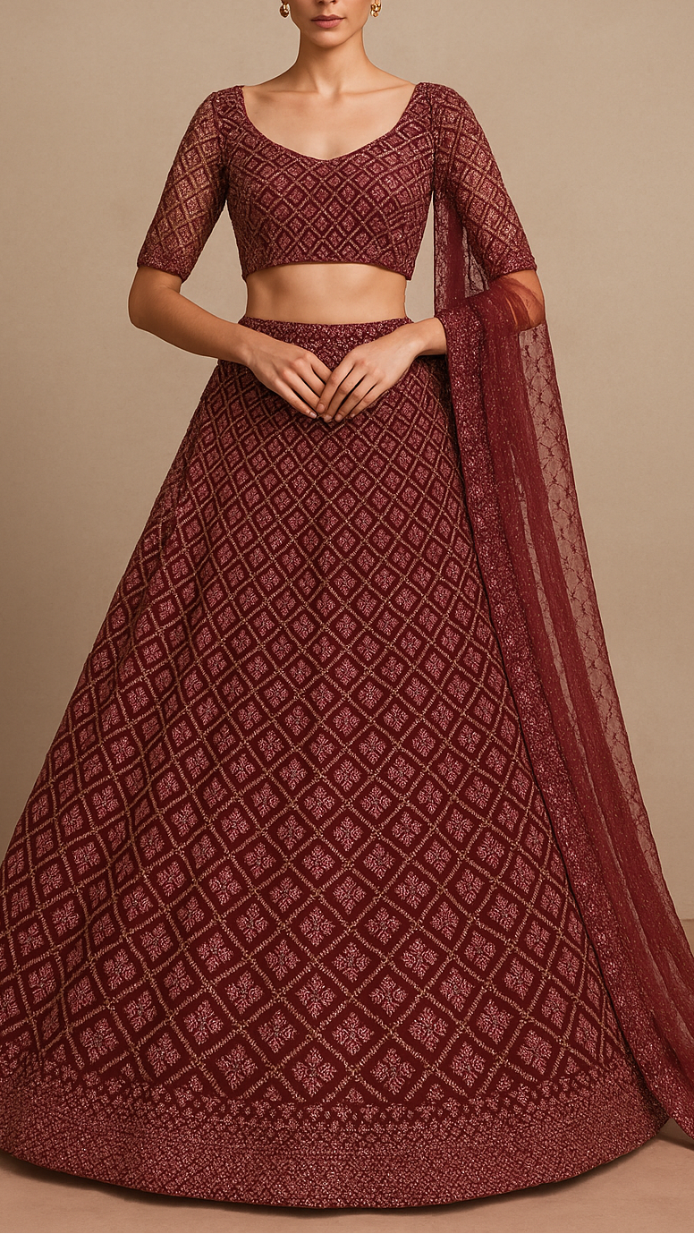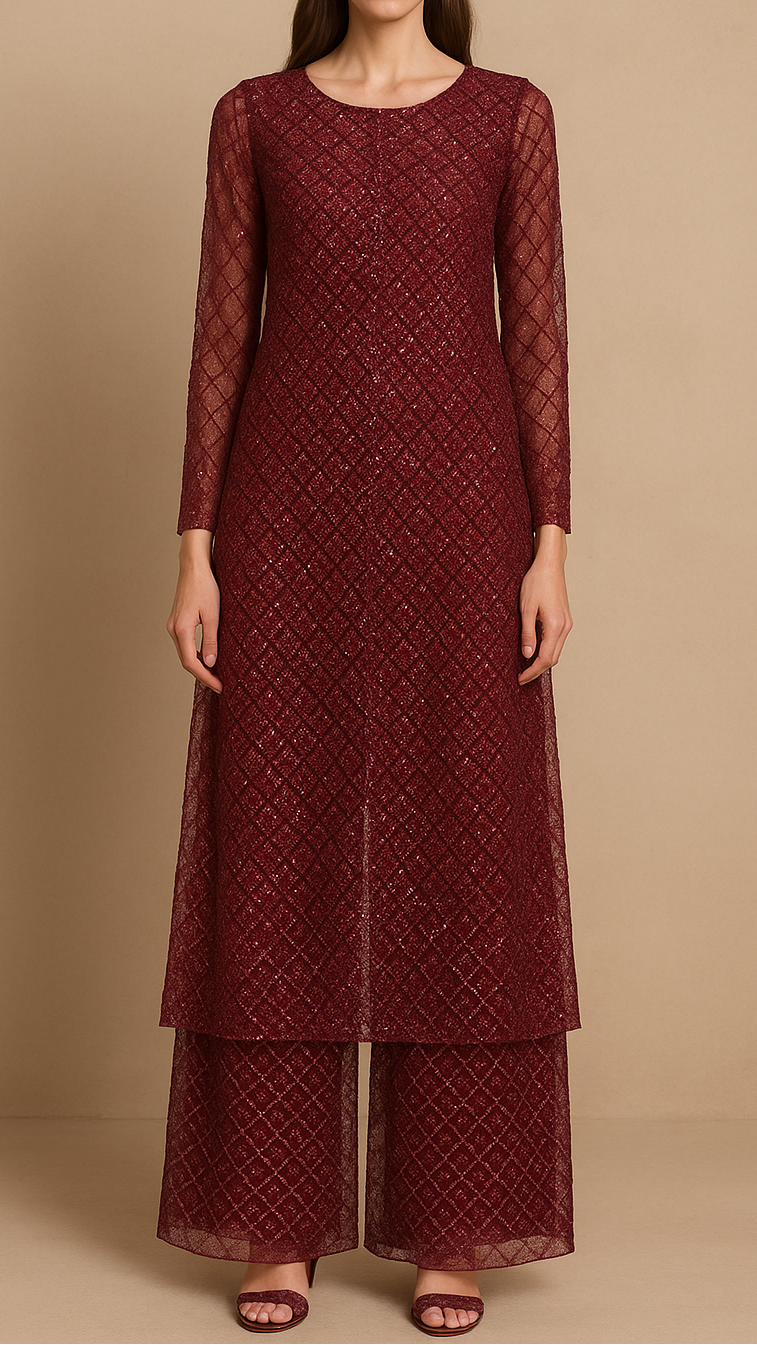| Fabric Name | Maroon Net Fabric With All Over Sequins And Bead Work |