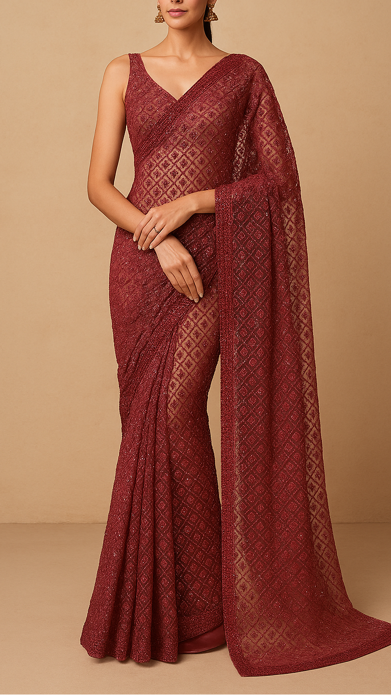 Maroon Imported Net Fabric With All Over Sequins And Bead Work 19399