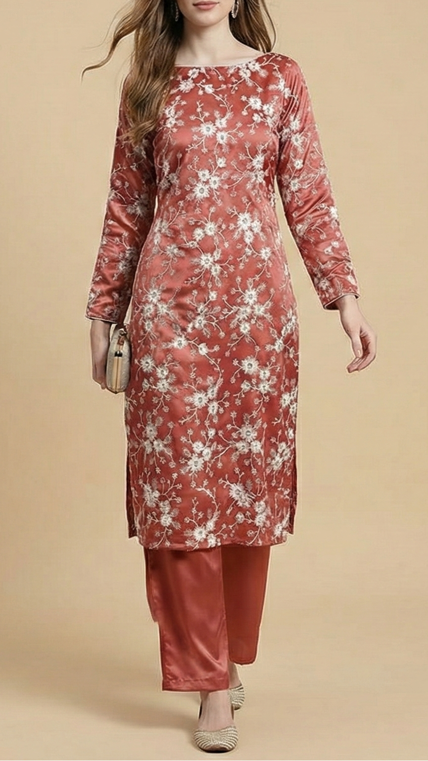 | Fabric Name | Maroon Satin Fabric With All Over Thread And Sequins Work |