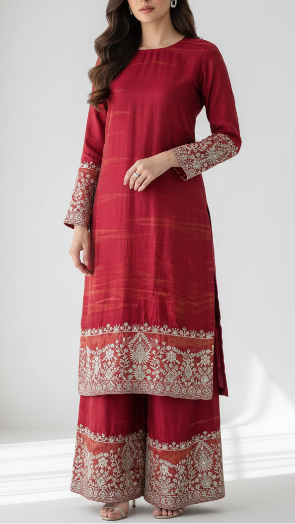 Ideal for sarees, dupattas, and statement panels where a strong border and subtle sheen are key to creating an elegant, eye-catching look.