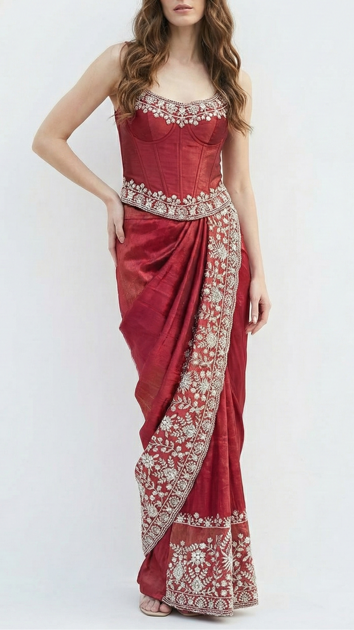 Should you require further assistance, please contact our dedicated customer care team. Provide them with your body dimensions and a sample image of the desired attire. Our experts will ensure you receive precise guidance tailored to your needs, reflecting our commitment to exceptional service and luxury.