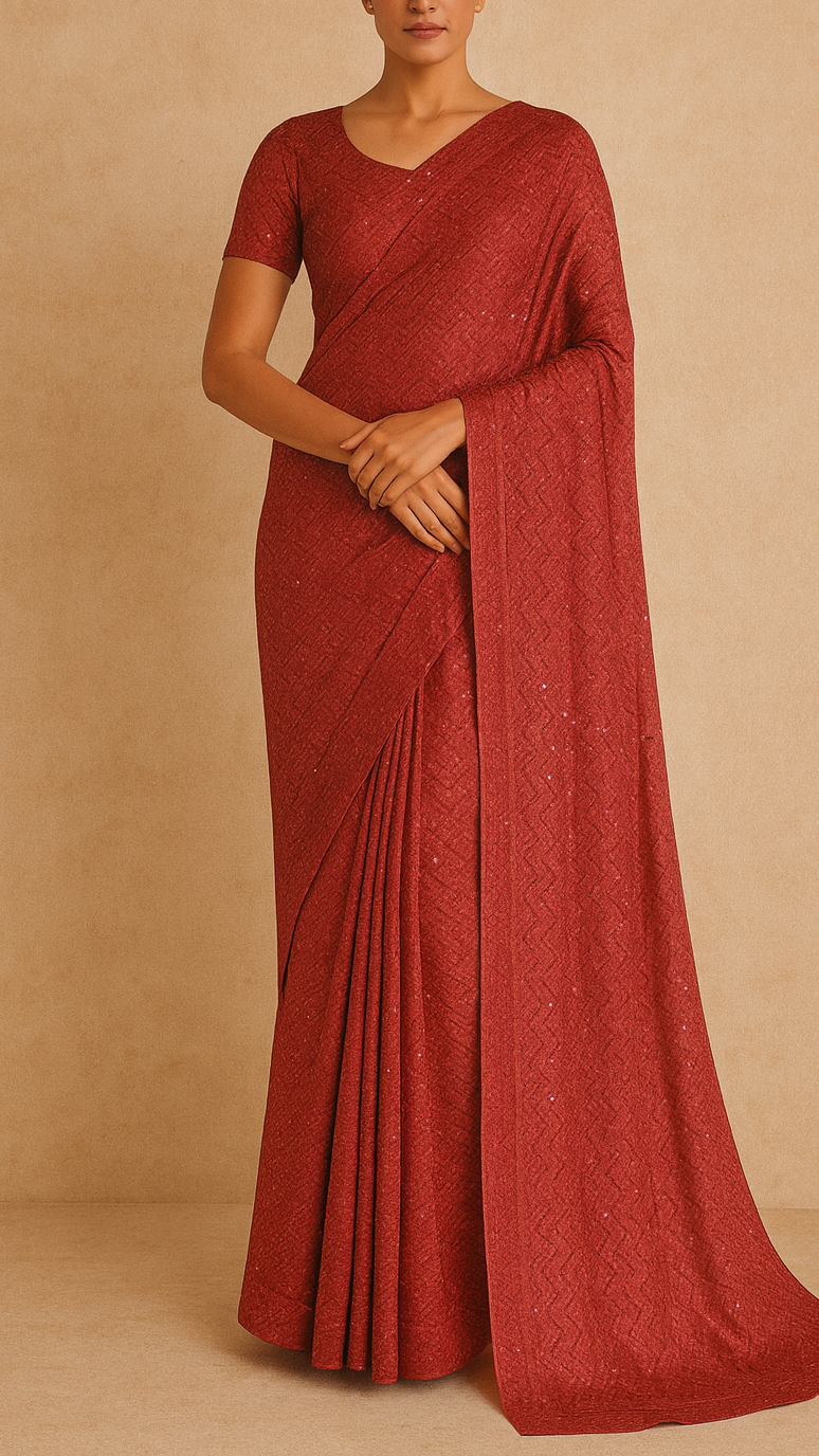 | Fabric Name | Maroon Upada Silk Fabric With All Over Thread And Sequins Work |