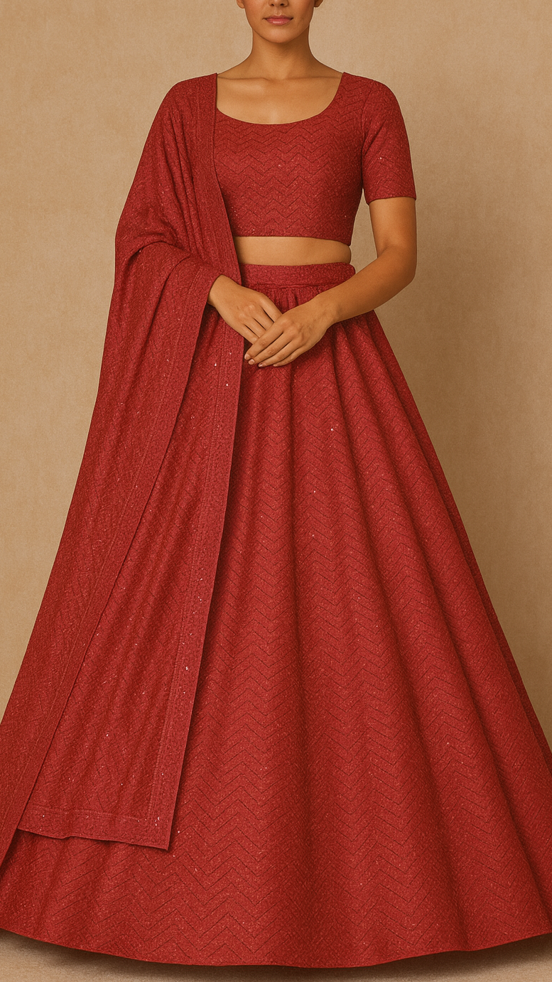 Ideal for sarees, lehengas, gowns, and dupattas, this fabric blends traditional craftsmanship with modern sophistication. The combination of thread and sequins embroidery makes it a perfect choice for weddings, receptions, and celebratory occasions.