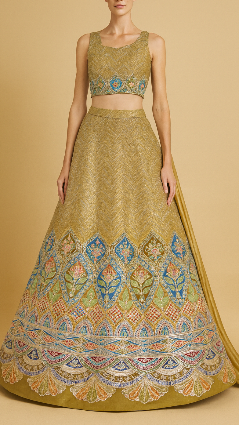 Perfect for designing sarees, dupattas, and lehengas, along with anarkalis, festive gowns, and elegant kurtis. The shimmering zari and sequins detailing paired with a heavy border make it ideal for wedding events, festive celebrations, and evening wear, adding a touch of royal elegance and timeless charm.