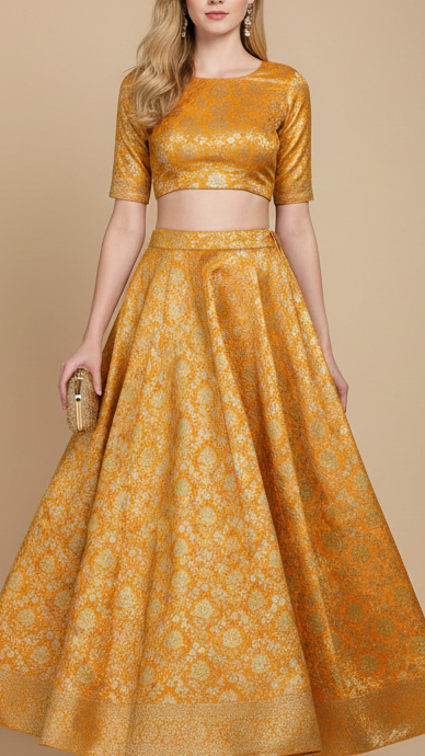 | Fabric Name | Mustard Banarasi Brocade Fabric With Zari Handloom |
