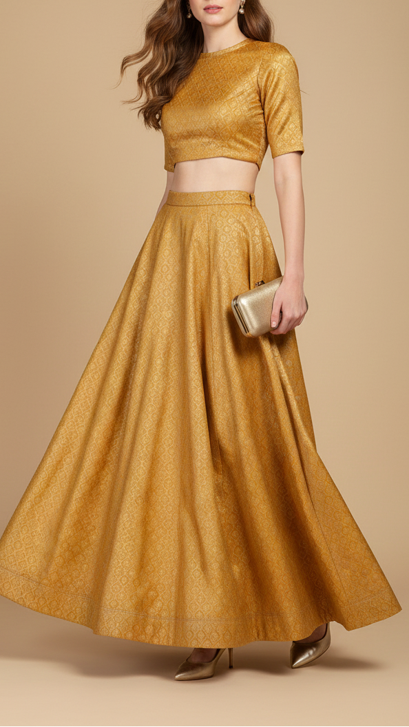 Perfect for sarees, anarkalis, jackets, ethinic jumpsuits, sherwani, etc. The rich look of this fabric is ideal for festive outfits, wedding attire & traditional wear.