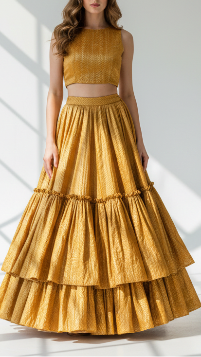 Perfect for lehenga, sarees, anarkalis, jackets, ethinic jumpsuits, sherwani, etc. The rich look of this fabric is ideal for festive outfits, wedding attire & traditional wear.