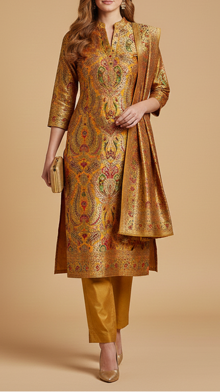 Perfect for sarees, anarkalis, jackets, ethinic jumpsuits, sherwani, etc. The rich look of this fabric is ideal for festive outfits, wedding attire & traditional wear.