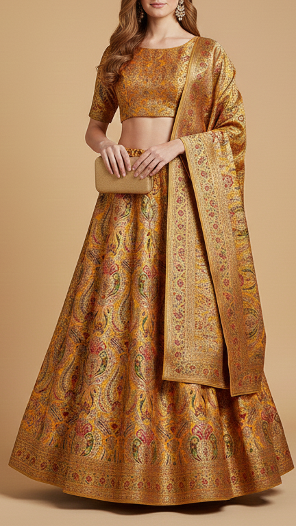 | Fabric Name | Mustard Pure Banarasi Brocade Fabric With All Over Thread And Zari Handloom |