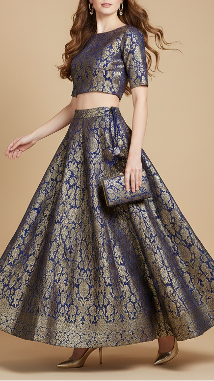 Perfect for sarees, anarkalis, jackets, ethinic jumpsuits, sherwani, etc. The rich look of this fabric is ideal for festive outfits, wedding attire & traditional wear.
