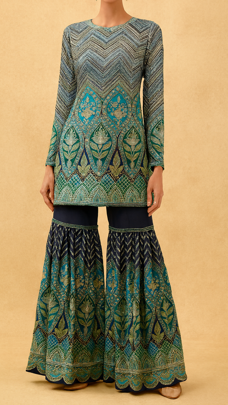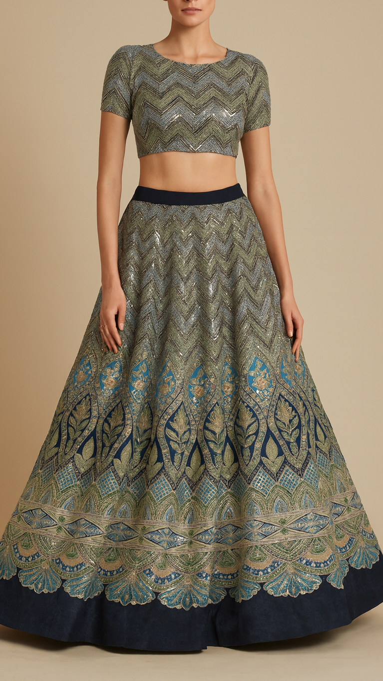 Perfect for designing sarees, dupattas, and lehengas, along with anarkalis, festive gowns, and elegant kurtis. The shimmering zari and sequins detailing paired with a heavy border make it ideal for wedding events, festive celebrations, and evening wear, adding a touch of royal elegance and timeless charm.