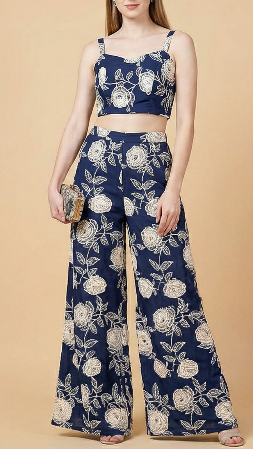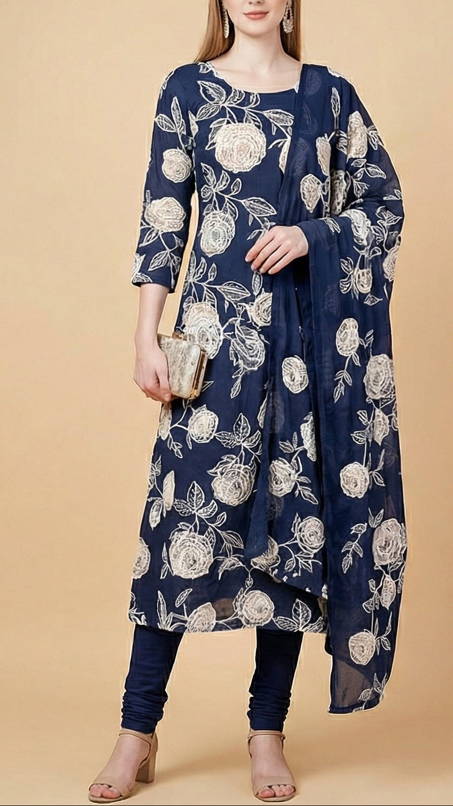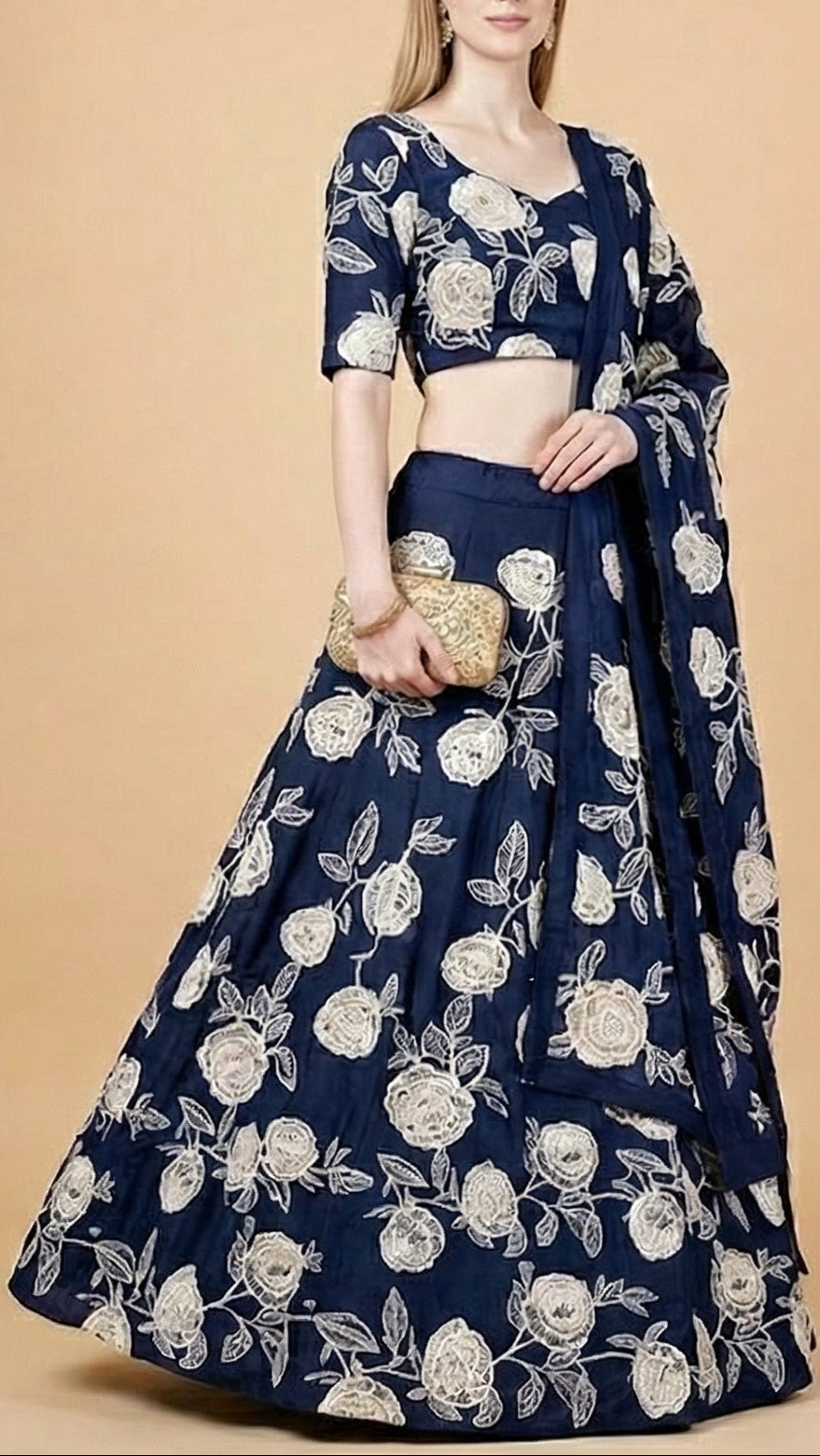 | Fabric Name | Navy Blue Imported Crepe Fabric With All Over Cutwork |