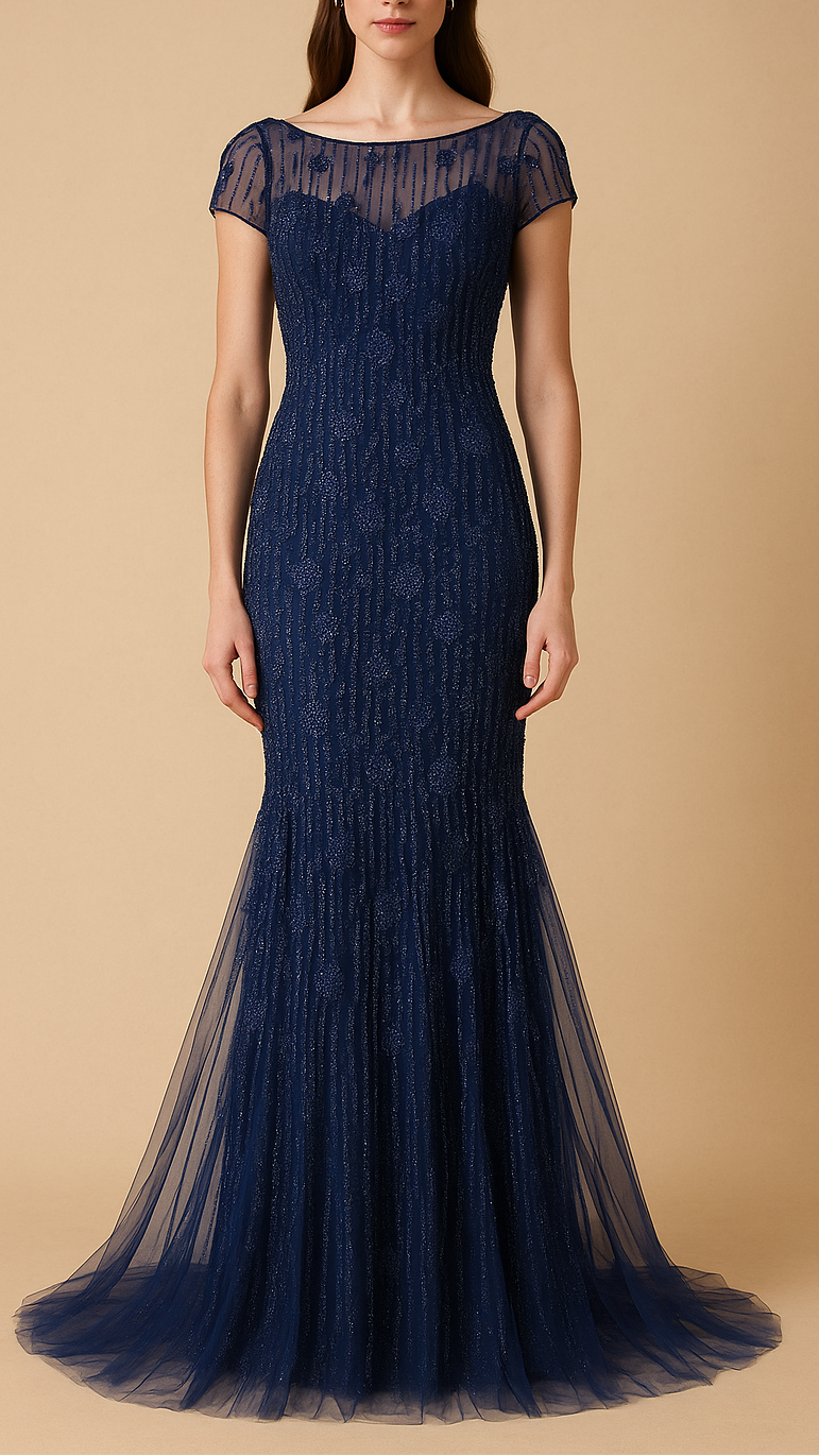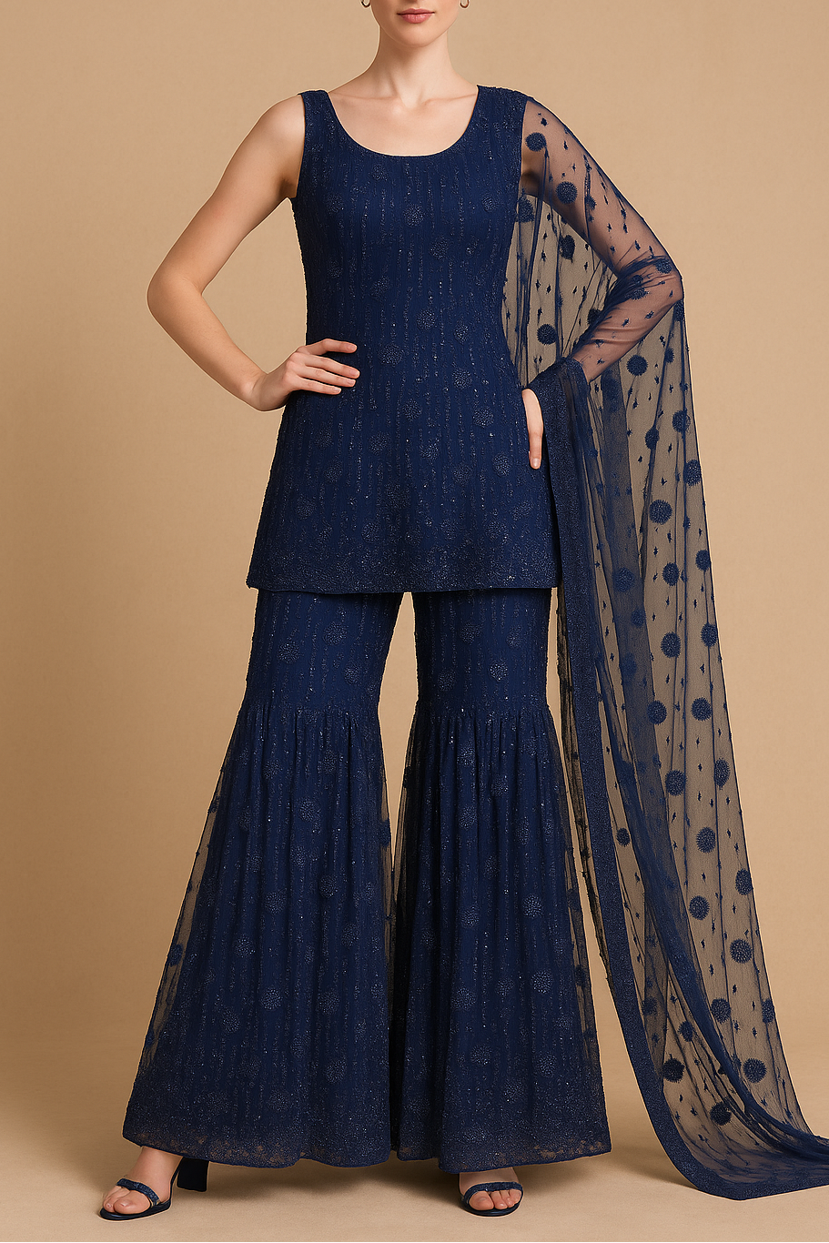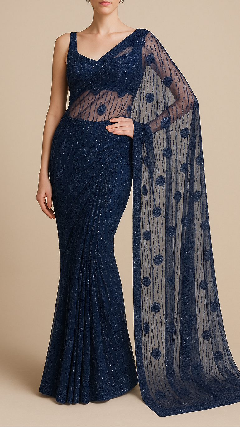 | Fabric Name | Navy Blue Imported Net Fabric With All Over Bead And Sequins Work |