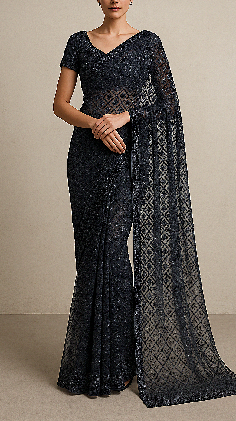 | Fabric Name | Navy Blue Net Fabric With All Over Sequins And Bead Work |