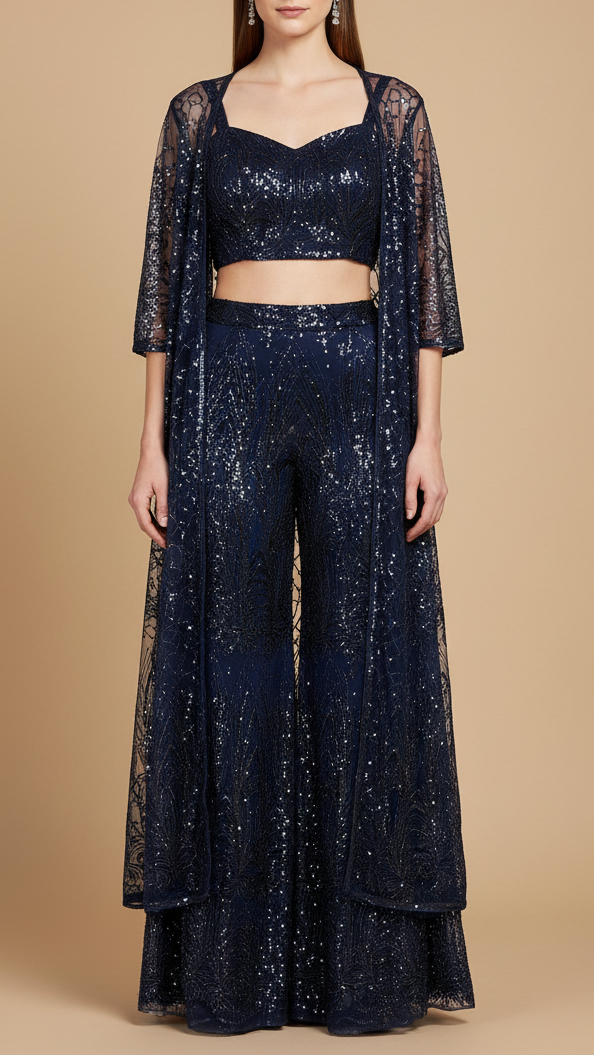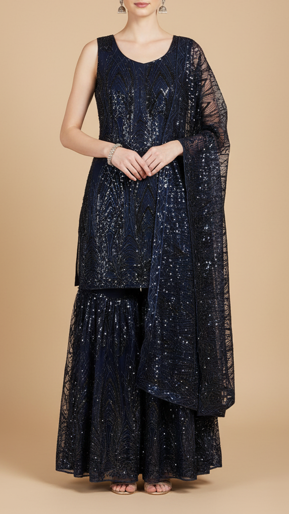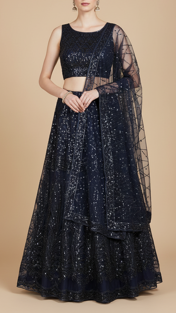 | Fabric Name | Navy Blue Imported Net with All-Over Bead and Sequins Work |