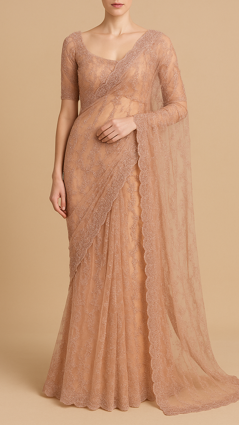 Ideal for sarees, lehengas, gowns, and dupattas, this fabric beautifully combines delicacy with sophistication. The blend of thread, bead, and sequins work makes it perfect for weddings, receptions, and celebratory occasions.