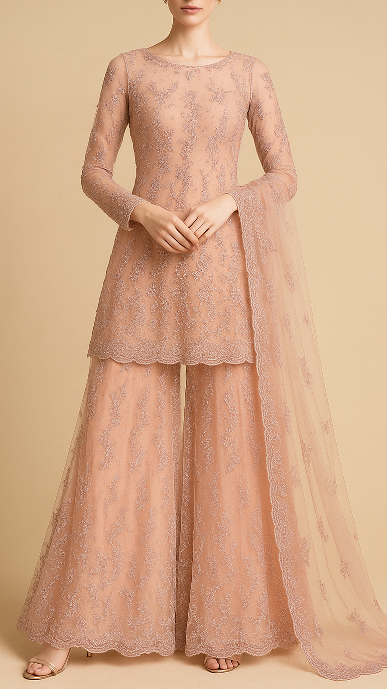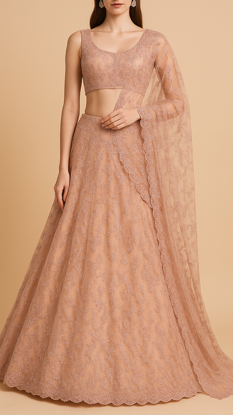 | Fabric Name | Old Rose Imported Net Fabric With All Over Thread, Bead And Sequins Work |