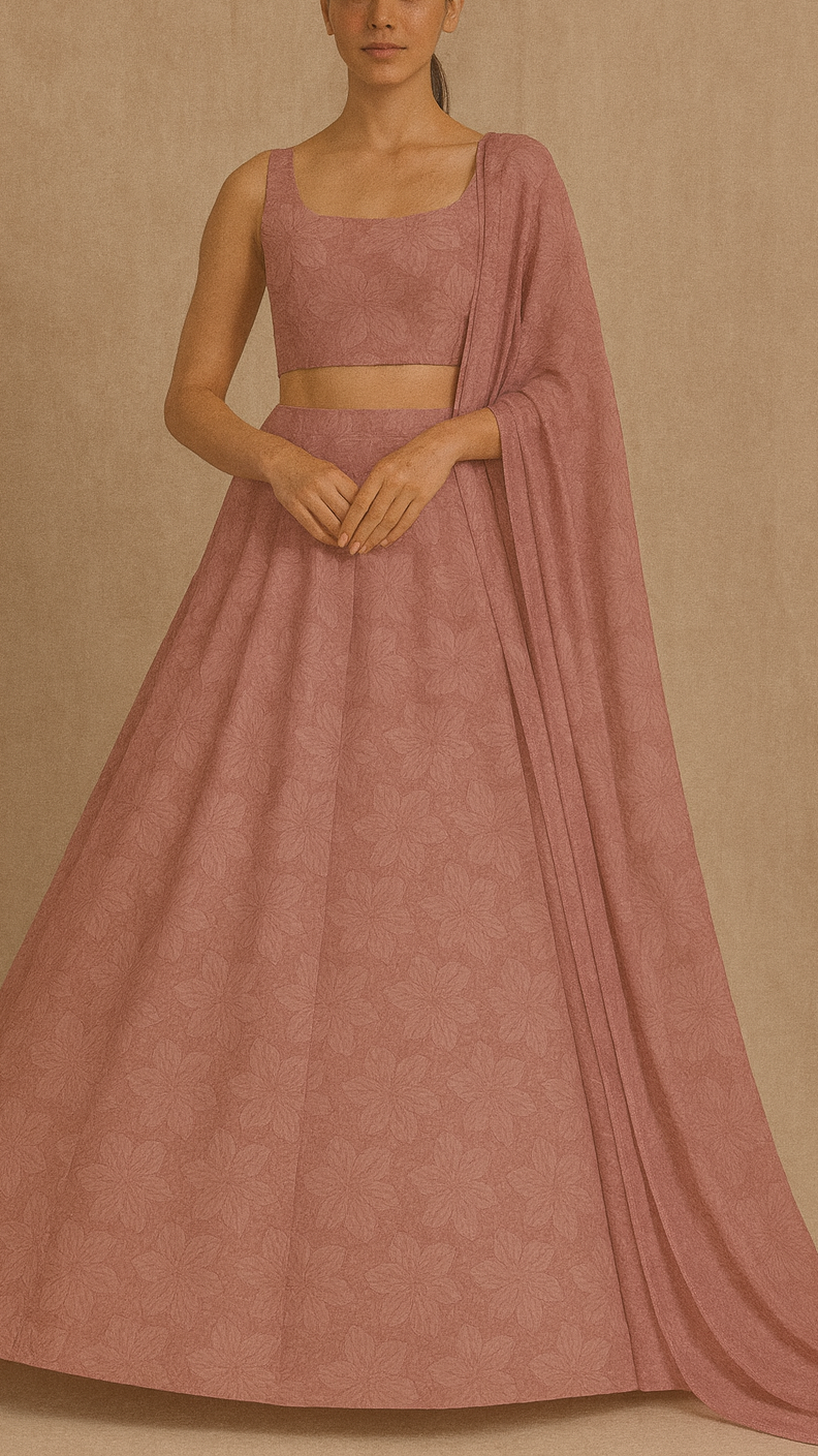 Fabric Name | Onion Georgette Fabric With All Over Self Work |