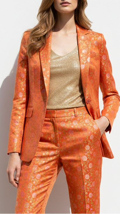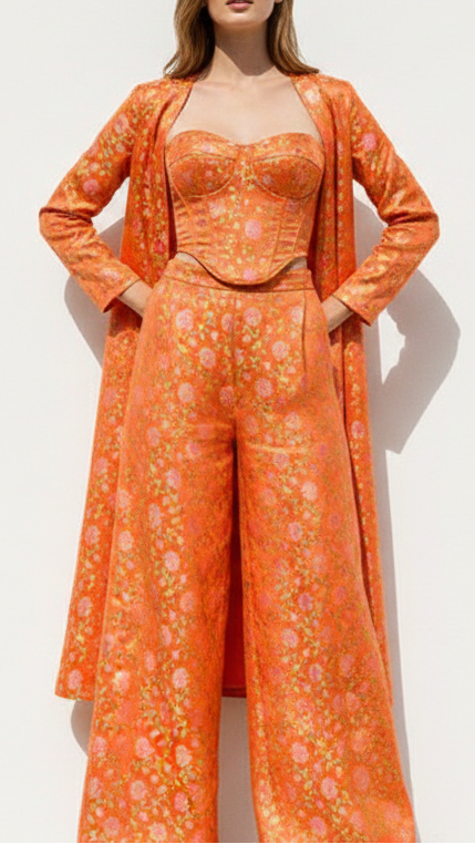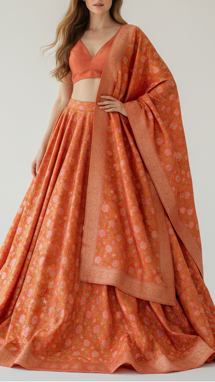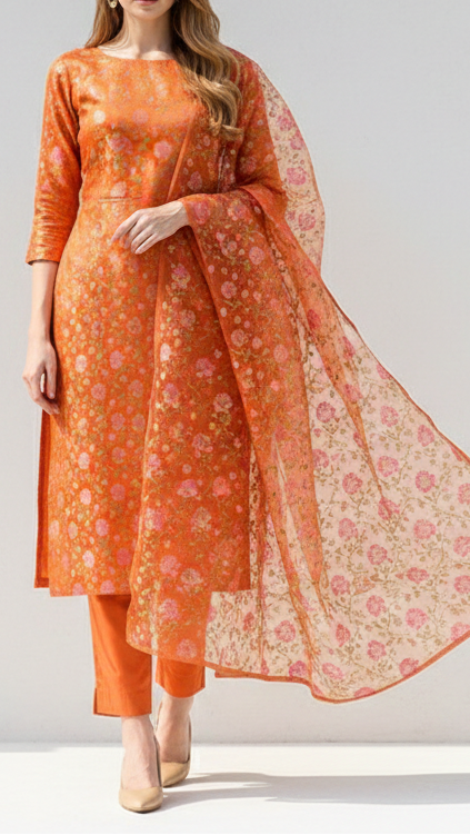 | Fabric Name | Orange Banarasi Brocade Fabric With All Over Thread And Zari Handloom |