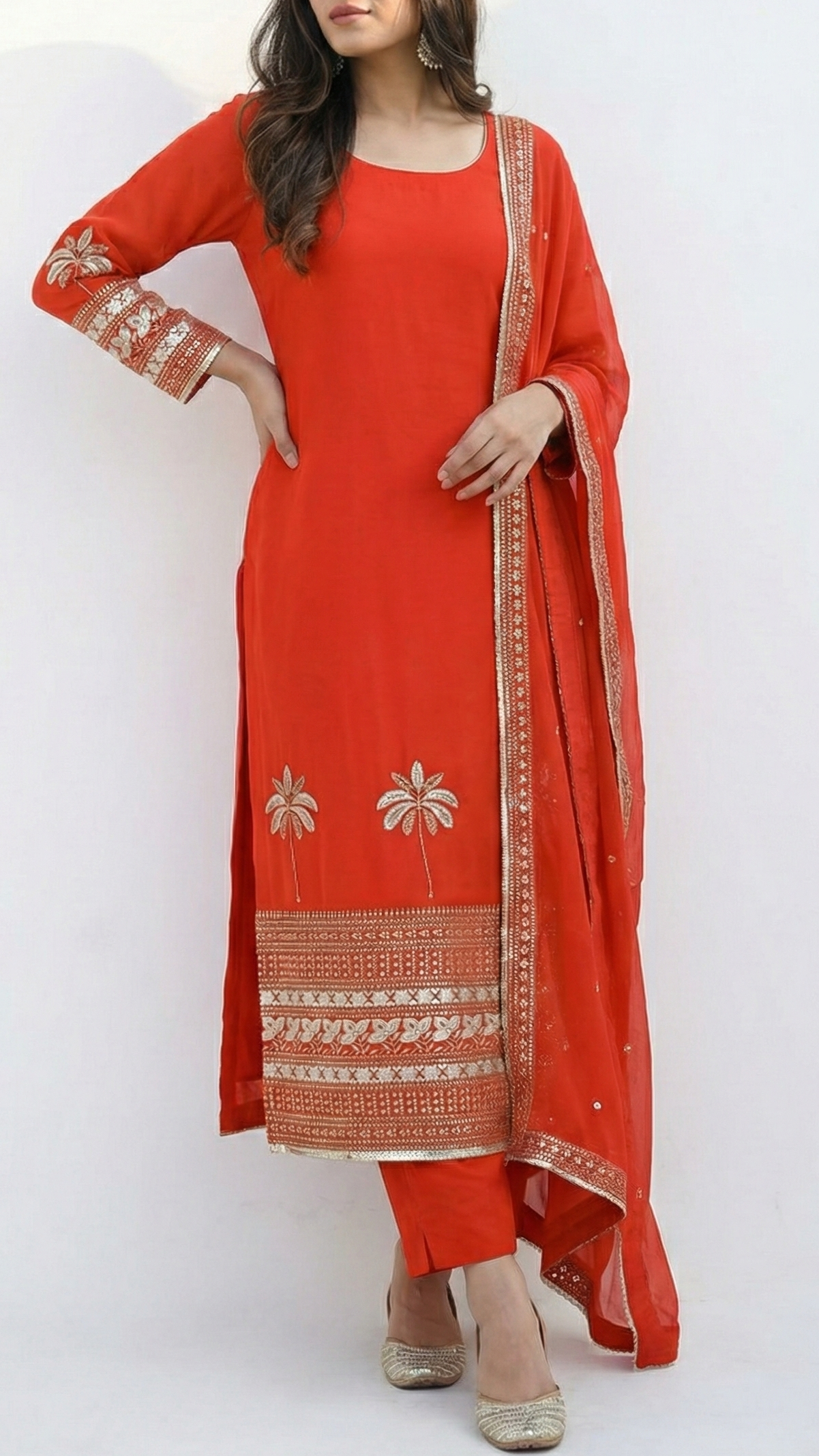 Perfect for creating sarees, dupattas, lehengas, and anarkalis, as well as festive gowns and statement ethnic outfits. The combination of zari detailing and a rich border makes it ideal for wedding functions, festive celebrations, and evening occasions, offering a refined, radiant, and timeless look.