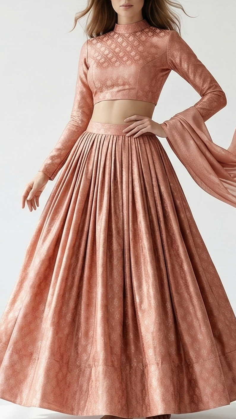Banarasi brocade lends a regal, timeless charm to sarees, lehengas, anarkalis, sherwanis, blouses, and fusion silhouettes, elevating apparel with its intricate zari shimmer and heritage elegance.