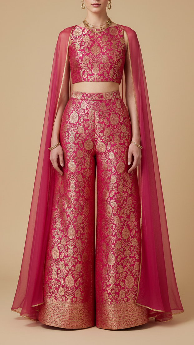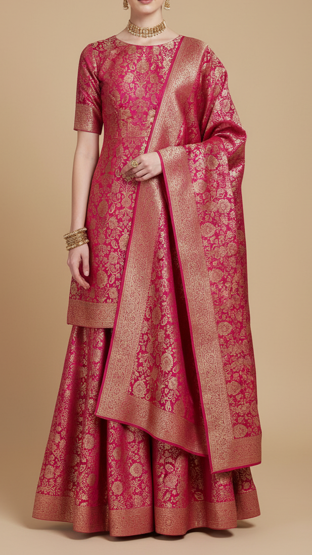 Perfect for designing sarees, lehengas, and anarkalis, along with blouses, sherwanis, bandhgalas, and jackets. Its golden zari craftsmanship makes it ideal for wedding ensembles, festive occasions, and heritage-inspired outfits, offering a majestic and timeless appeal.