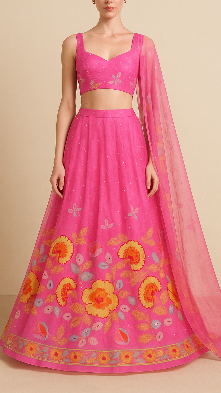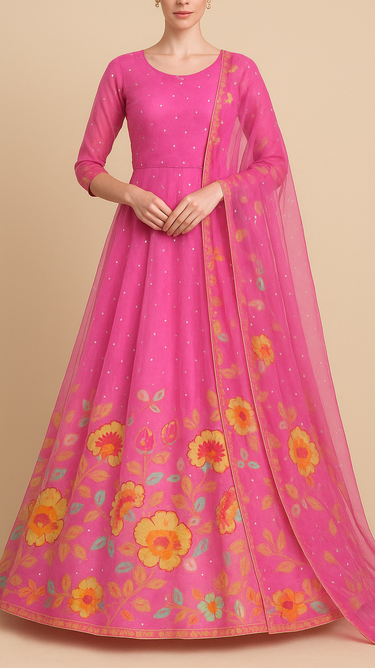 Ideal for designing sarees, dupattas, and lehengas, as well as anarkalis, kurtis, and fusion gowns. The intricate detailing and border finish make it perfect for festive events, wedding functions, and celebratory occasions, offering a vibrant and graceful look.