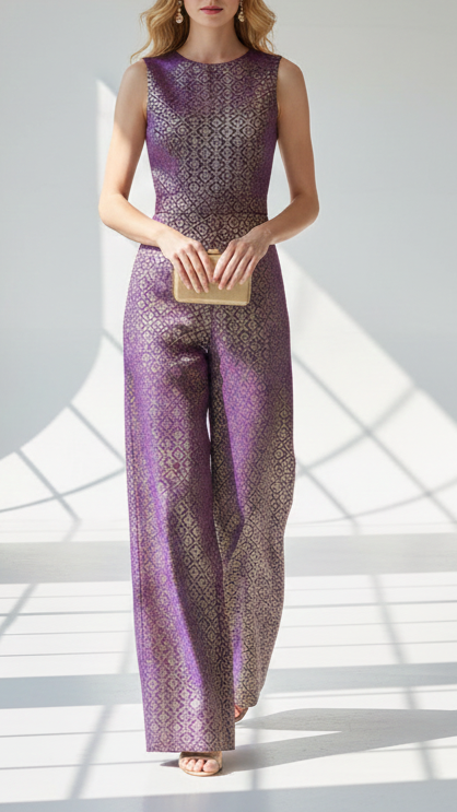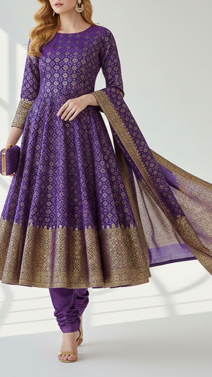 Purple Banarasi Brocade Fabric With All Over Golden Zari Handloom 21050