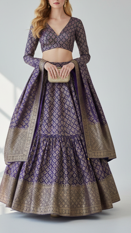 Perfect for lehenga, sarees, anarkalis, jackets, ethinic jumpsuits, sherwani, etc. The rich look of this fabric is ideal for festive outfits, wedding attire & traditional wear.