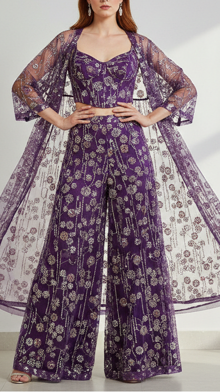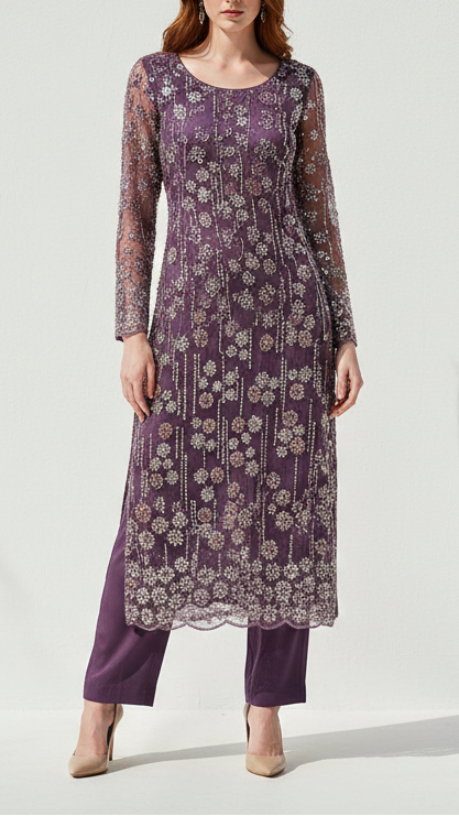 | Fabric Name | Purple Imported Net Fabric with Allover Sequins, Beads & Kutdana Work |