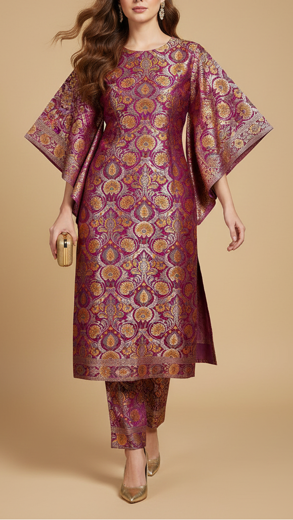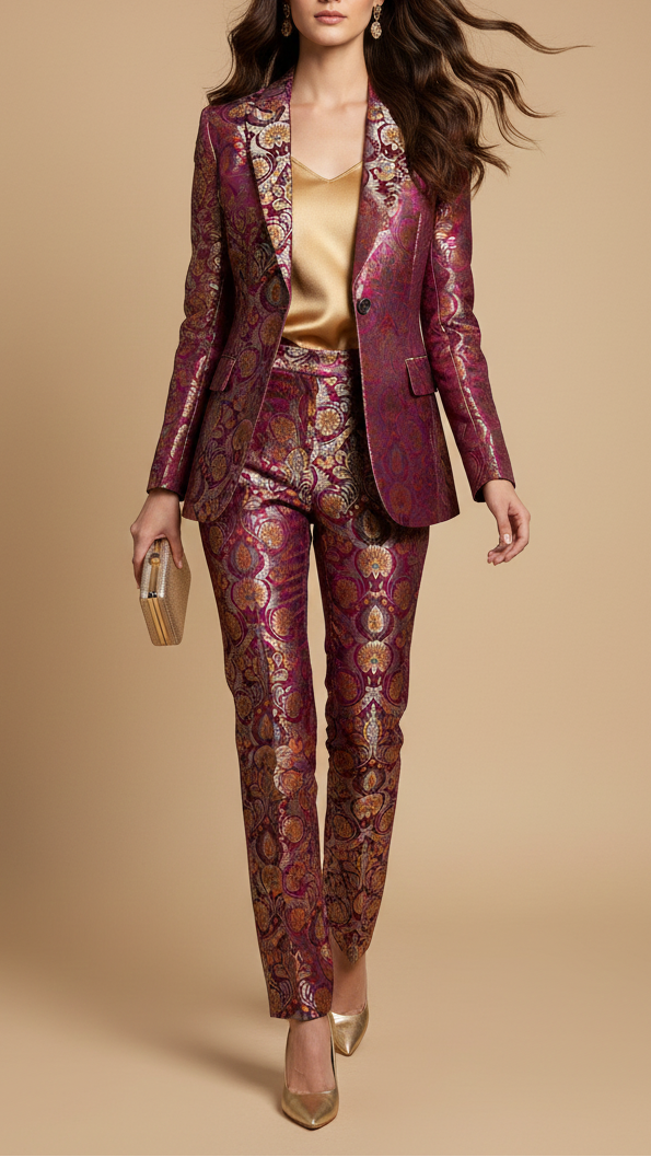 Perfect for sarees, anarkalis, jackets, ethinic jumpsuits, sherwani, etc. The rich look of this fabric is ideal for festive outfits, wedding attire & traditional wear.
