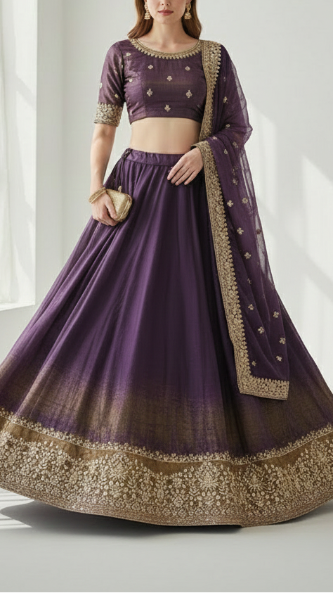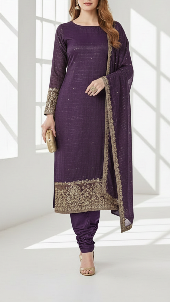 Purple Tissue Fabric with Heavy Border of Zari and Sequins Work 20910