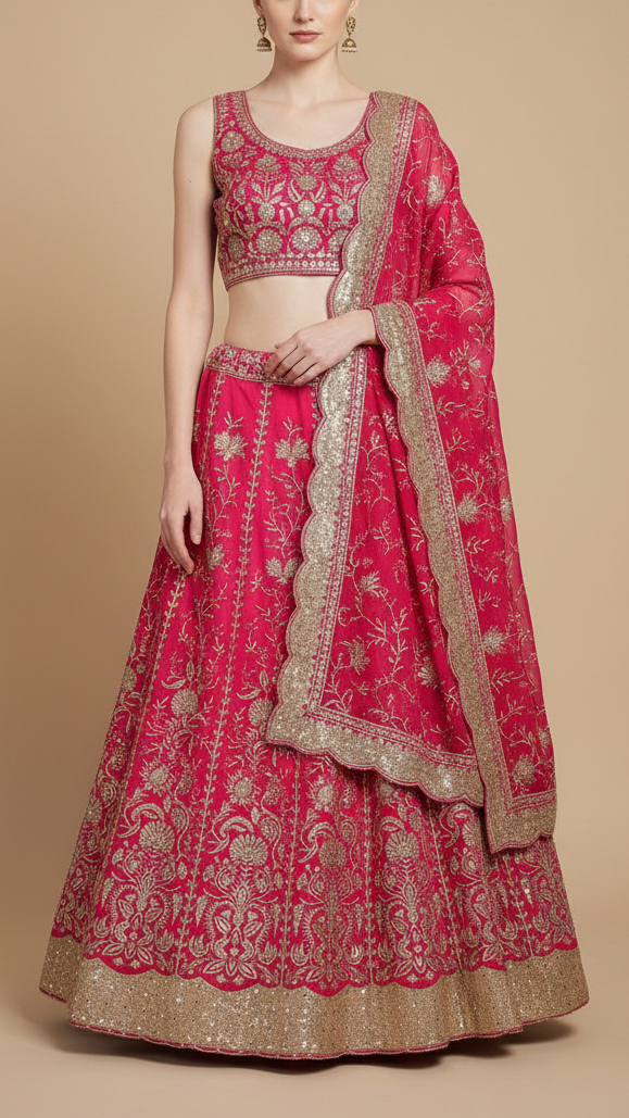 Ideal for sarees, lehengas, gowns, and dupattas, this fabric complements both traditional and modern outfits. The zari and sequins work with a bordered edge ensures graceful drapes, making it suitable for weddings, receptions, and festive occasions.