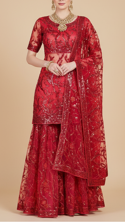 Rani Imported Net Fabric with All Over Katdana, Bead, and Sequins Work 12208