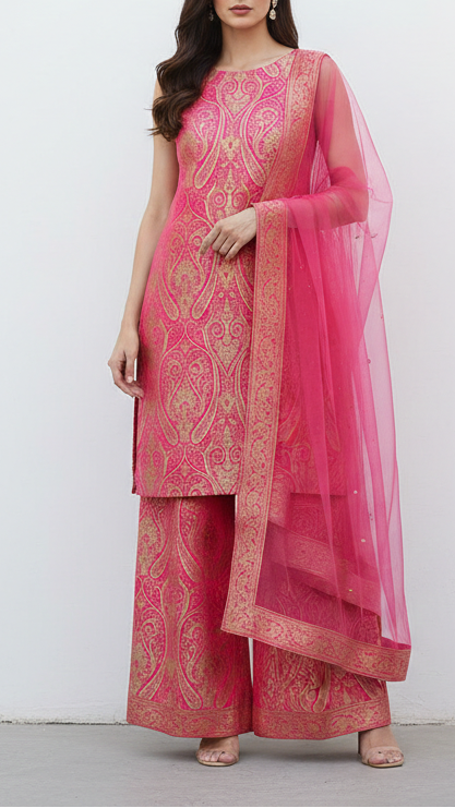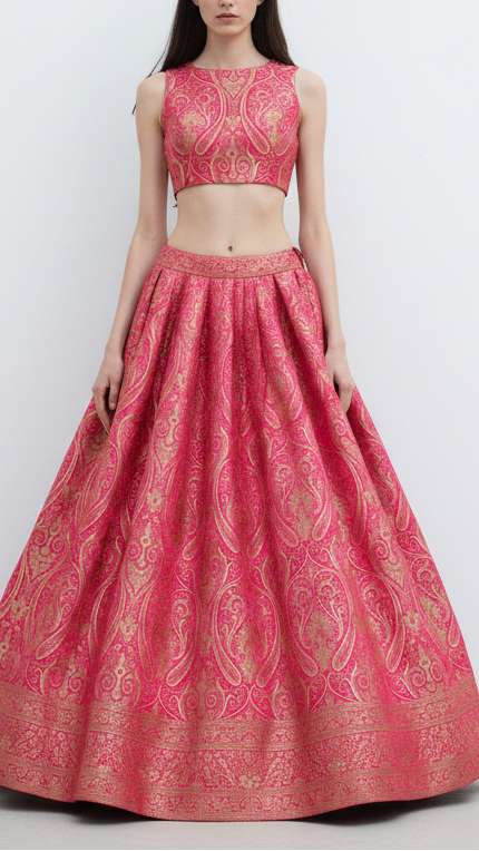 Ideal for lehengas, suits, jackets, and statement panels where richness, warmth, and detailed embellishment are essential for an elegant, premium finish.