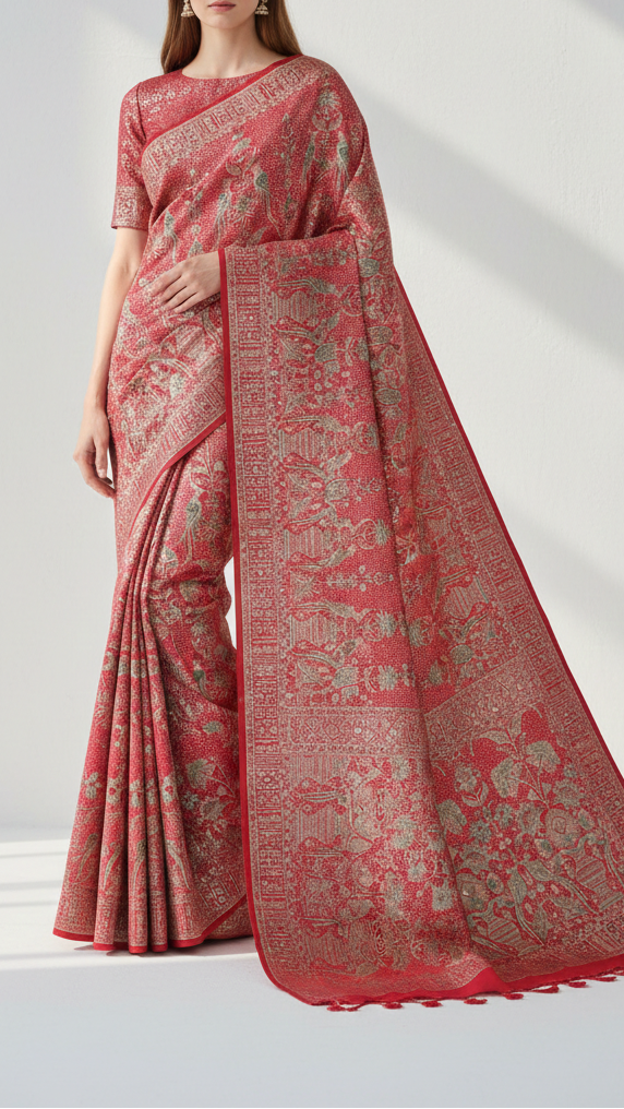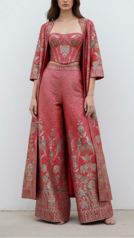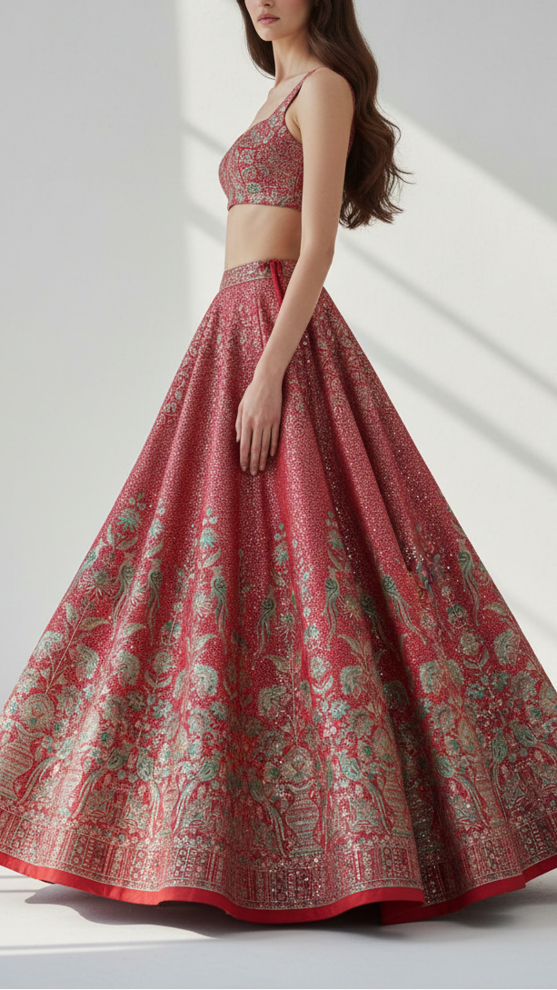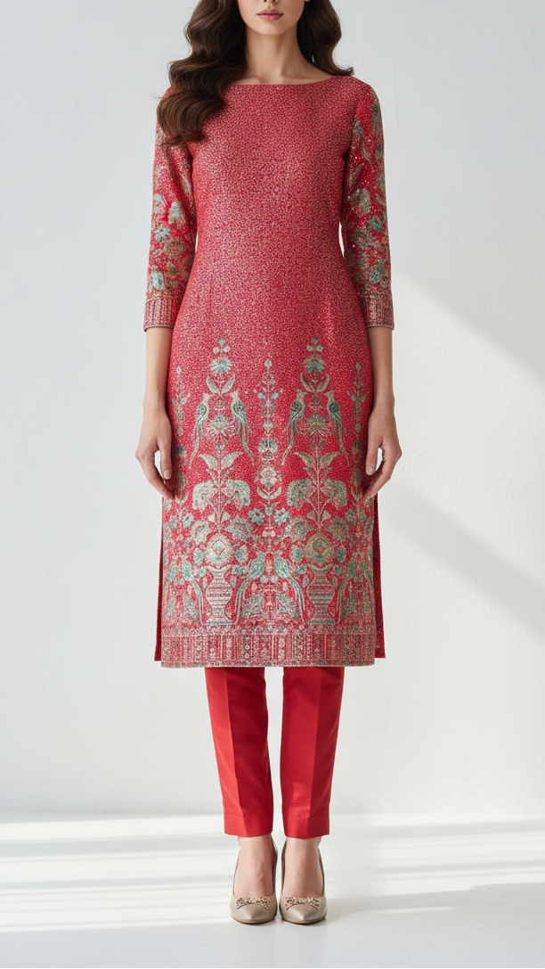 This Elegant Fabric Is Perfect For Bridal Sarees, Lehengas, And Reception Gowns Where The Heavy Border Adds A Regal Finish. The Combination Of Sequins And Thread Work Makes It Ideal For Festive Anarkalis, Shararas, And Statement Dupattas. It Also Works Beautifully For Indo-Western Skirts, Capes, And Jackets, Adding Both Texture And Shimmer For Grand Occasions.