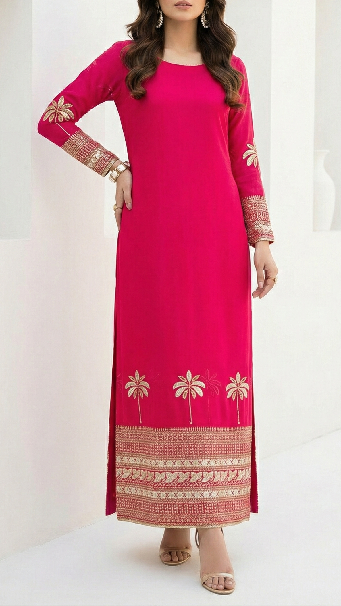 Should you require further assistance, please contact our dedicated customer care team. Provide them with your body dimensions and a sample image of the desired attire. Our experts will ensure you receive precise guidance tailored to your needs, reflecting our commitment to exceptional service and luxury.
