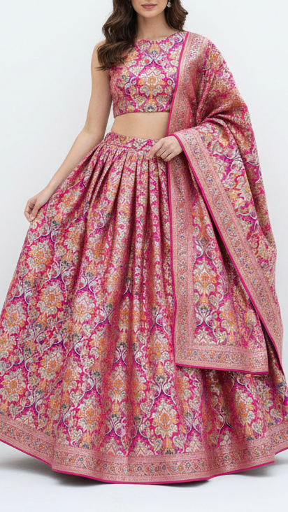 | Fabric Name | Rani Pink Pure Banarasi Brocade Fabric With All Over Thread And Zari Handloom |