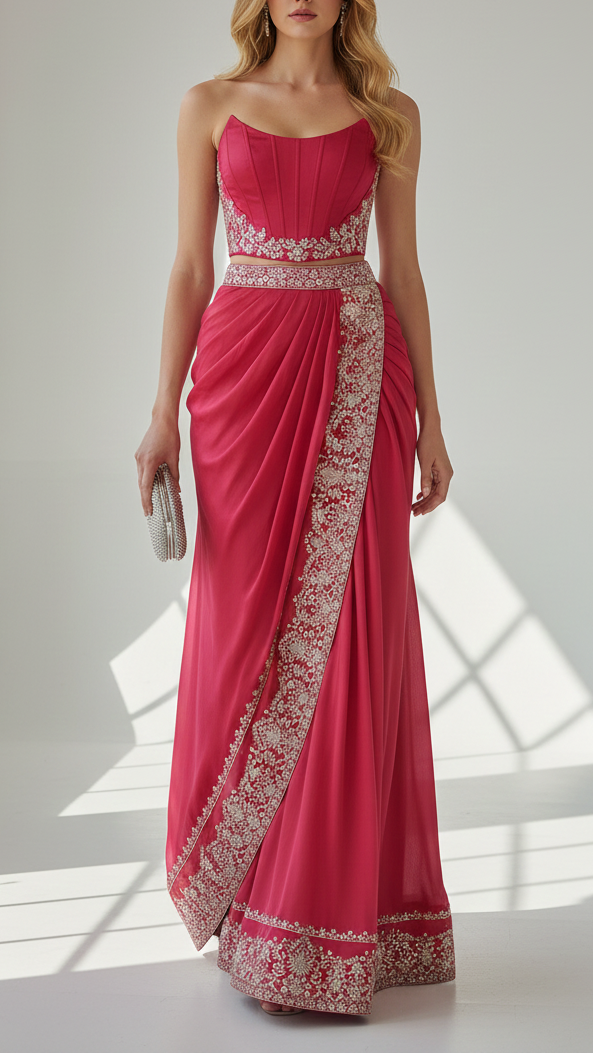 Should you require further assistance, please contact our dedicated customer care team. Provide them with your body dimensions and a sample image of the desired attire. Our experts will ensure you receive precise guidance tailored to your needs, reflecting our commitment to exceptional service and luxury.