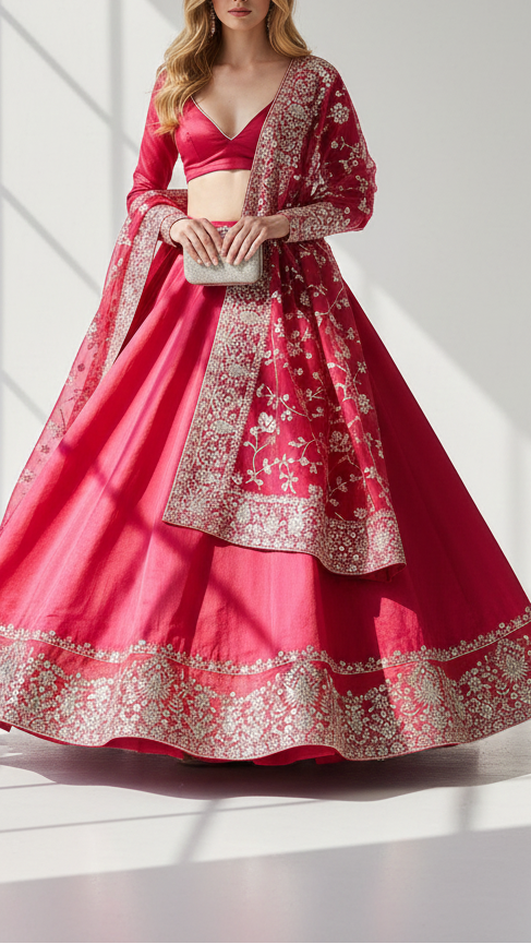 Ideal for sarees, dupattas, and statement panels where a strong border and subtle sheen are key to creating an elegant, eye-catching look.
