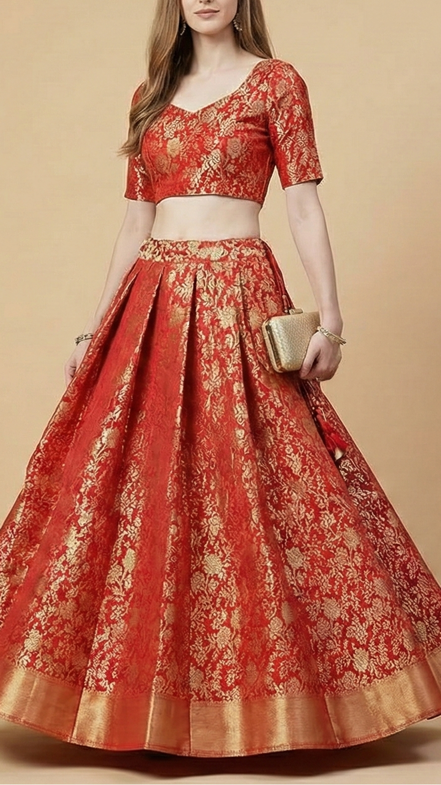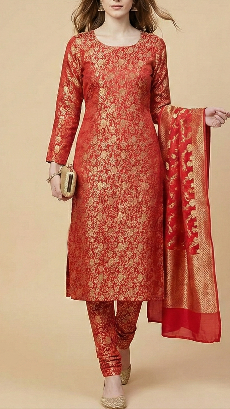 | Fabric Name | Red Banarasi Brocade Fabric With All Over Golden Zari Handloom |