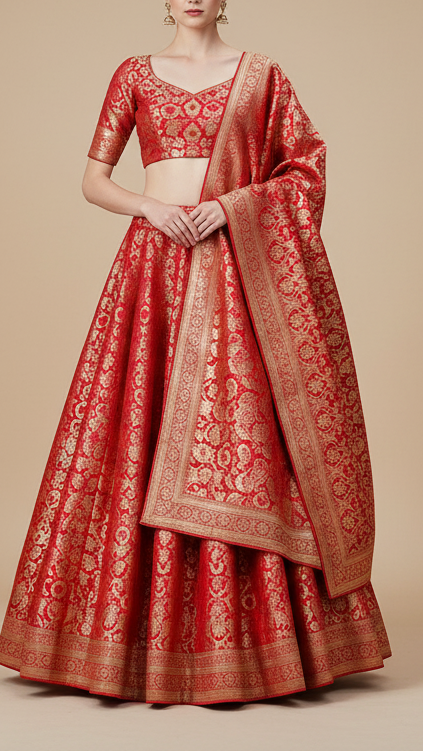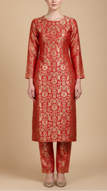 | Fabric Name | Red Banarasi Brocade Fabric With All Over Golden Zari Handloom |