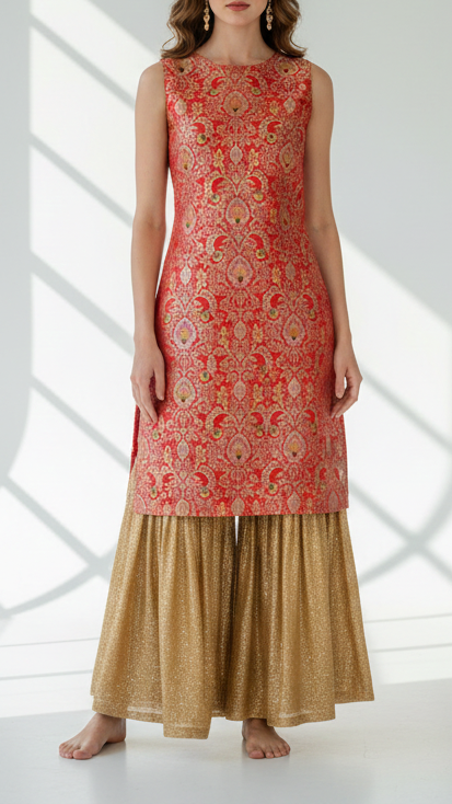 | Fabric Name | Red Banarasi Brocade Fabric With All Over Thread And Zari Handloom |