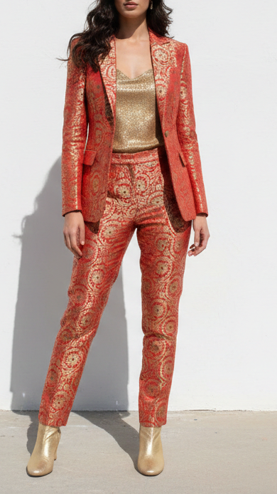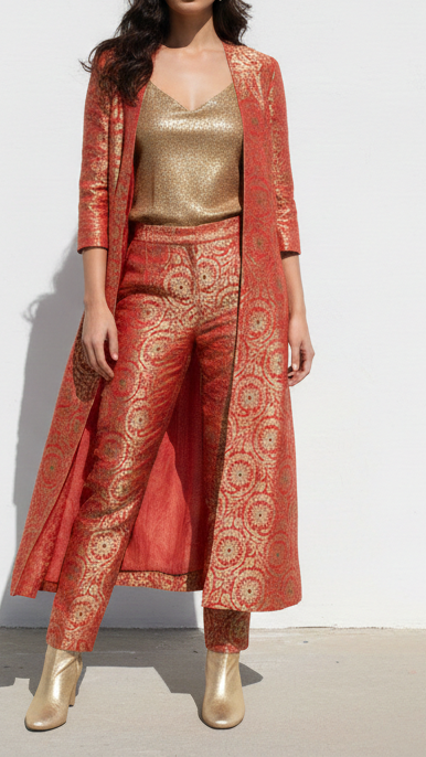 Perfect for lehenga, sarees, anarkalis, jackets, ethinic jumpsuits, sherwani, etc. The rich look of this fabric is ideal for festive outfits, wedding attire & traditional wear.