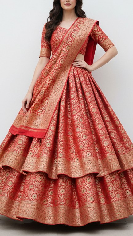 | Fabric Name | Red Banarasi Brocade Fabric With All Over Thread And Zari Handloom |