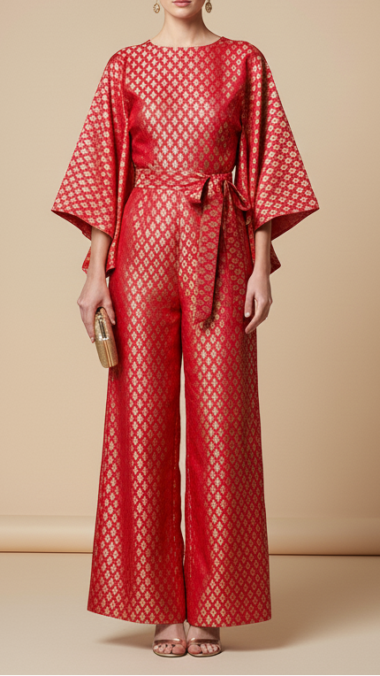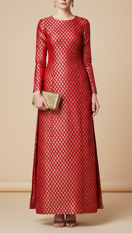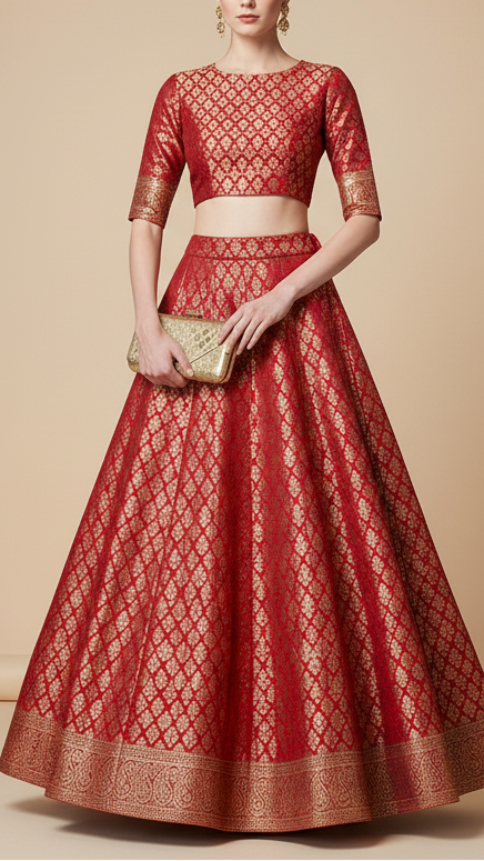 | Fabric Name | Red Banarasi Brocade Fabric with Allover Golden Zari Handloom |