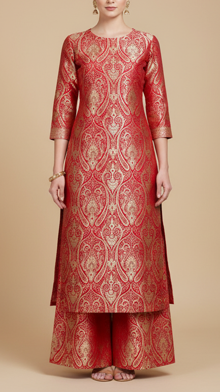 Perfect for sarees, anarkalis, jackets, sherwani, etc. The rich look of this fabric is ideal for festive outfits, wedding attire & traditional wear.