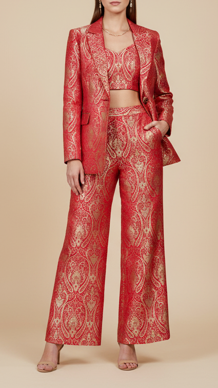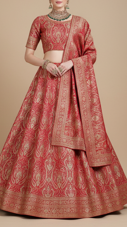 | Fabric Name | Red Banarasi Brocade Fabric with Allover Golden Zari Handloom |